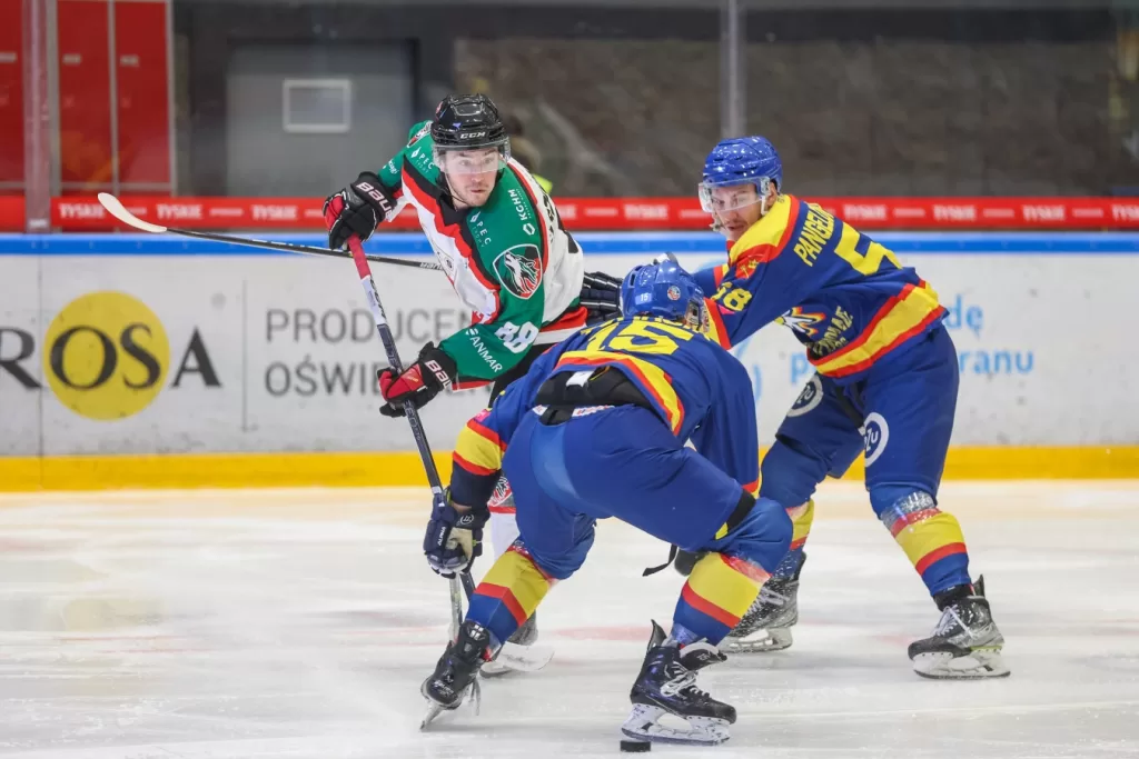 V jednom staršom článku som Nowy Targ chválil za zisk niekoľkých mien. Šlo o bieloruského obrancu Dmitry Zalamaya, ktorý do Poľska prišiel s vizitkou druhého najproduktívnejšieho obrancu Erste Ligy. Ak si ešte vezmeme do úvahy fakt, že je nielen pravým obrancom, ale aj tvrdým bekom, ktorý váži 106 kilogramov, vznikne nám veľmi pekná vizitka. Za Nowy Targ odohral teda 40 zápasov (8+19) a postupne sa stal členom prvého obranného páru. Svojej povesti neostal nič dlžný ani Patryk Wronka, ktorý opäť ovládol bodovanie ligy, už tretíkrát v rade a opäť s iným tímom. Naopak, tímu dlho chýba Damian Kapica, ktorý sa mal zaradiť medzi ďalšie výrazné posily. Okrem toho v útoku hrá aj Slovák Andrej Themár, ten sa po vydarenom štarte, kedy dokonca viedol ligovú produktivitu zranil a do zápasového kolotoča sa vrátil až v poslednom kole. Vo vyraďovacích bojoch by už mal byť úplne zotavený. Napokon, Nowy Targ stále môže byť čierny kôň play-off a toho sa osobne držím.