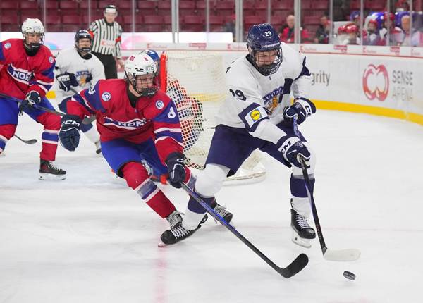 Aktívny bol najmä fínsky kapitán Juho Piiparinen, ktorý vyslal na bránu súpera dva nebezpečné pokusy a potvrdzoval svoju pozíciu jedného z favoritov na vysoký výber v tohtoročnom drafte. V druhej polovici prvej tretiny však „Suomi“ pridali na aktivite a nórsky brankár Timraz-Westin sa dostával pod čoraz väčší tlak.