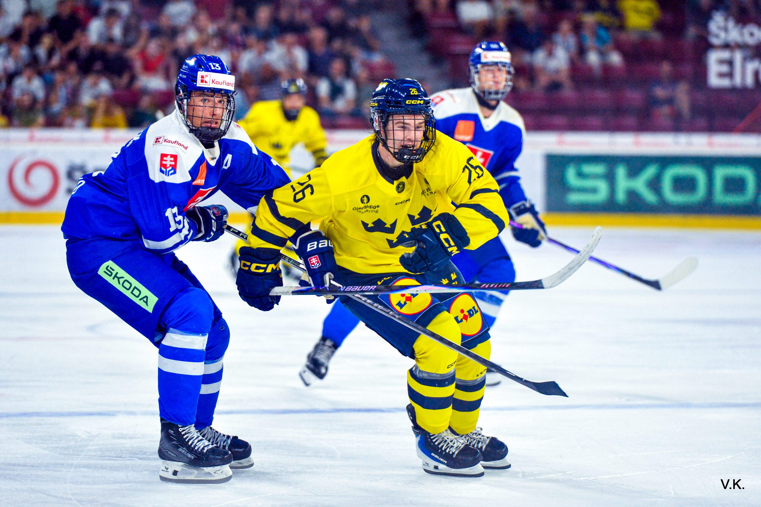 Slovenskí mladíci vstúpili do zápasu proti Švédsku odhodlane a v úvode si vytvorili niekoľko sľubných príležitostí, no na presný zásah to nestačilo. Naopak, Švédi udreli v 6. minúte, keď Gustafsson otvoril skóre prudkou strelou z medzikružia. V polovici tretiny pridali severania druhý gól, keď Bartholdsson šikovne tečoval Nordmarkovo nahodenie. Aj napriek viacerým šanciam, vrátane veľkej možnosti Obuška v závere, odchádzalo Slovensko po prvom dejstve do šatne za stavu 0:2.